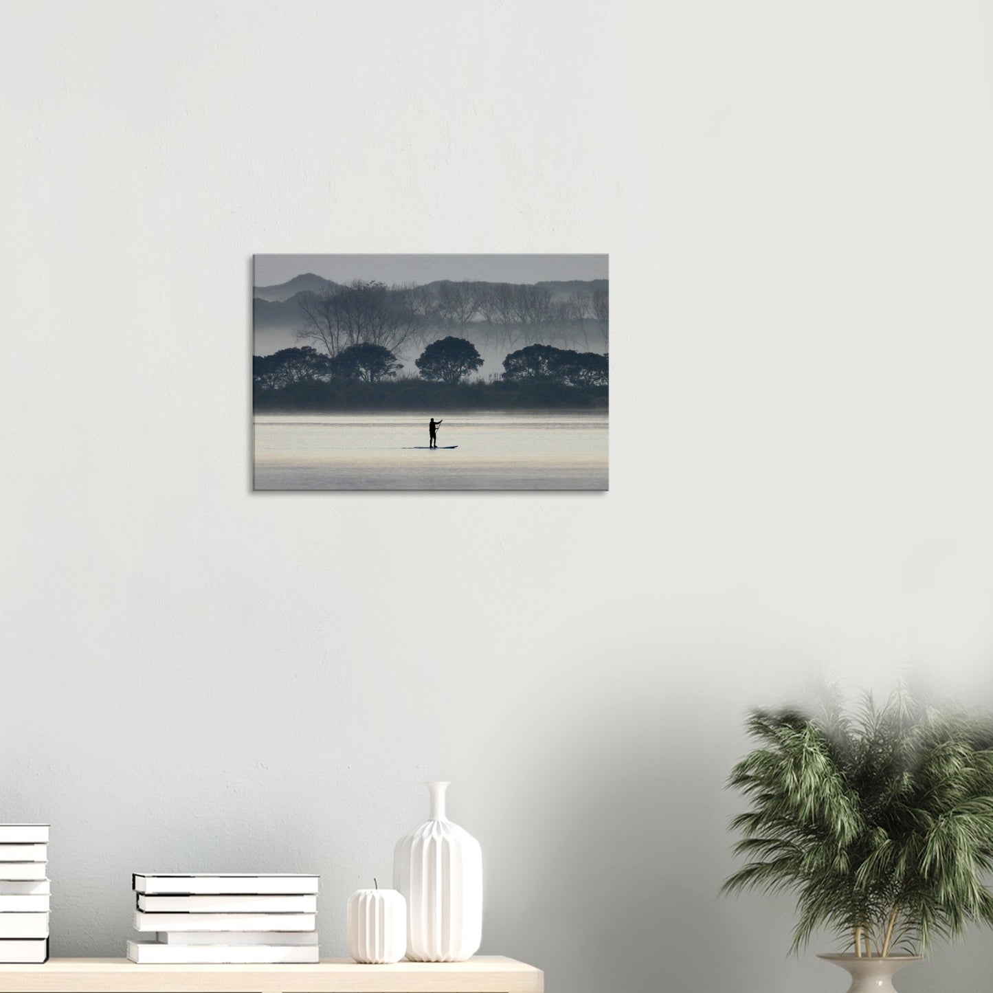 Transform your space with our stunning canvas print, depicting a peaceful early morning paddle on the water, where gentle mist rises, creating a serene and moody atmosphere. This artwork is perfect for nature lovers who cherish quiet moments and untouched landscapes.