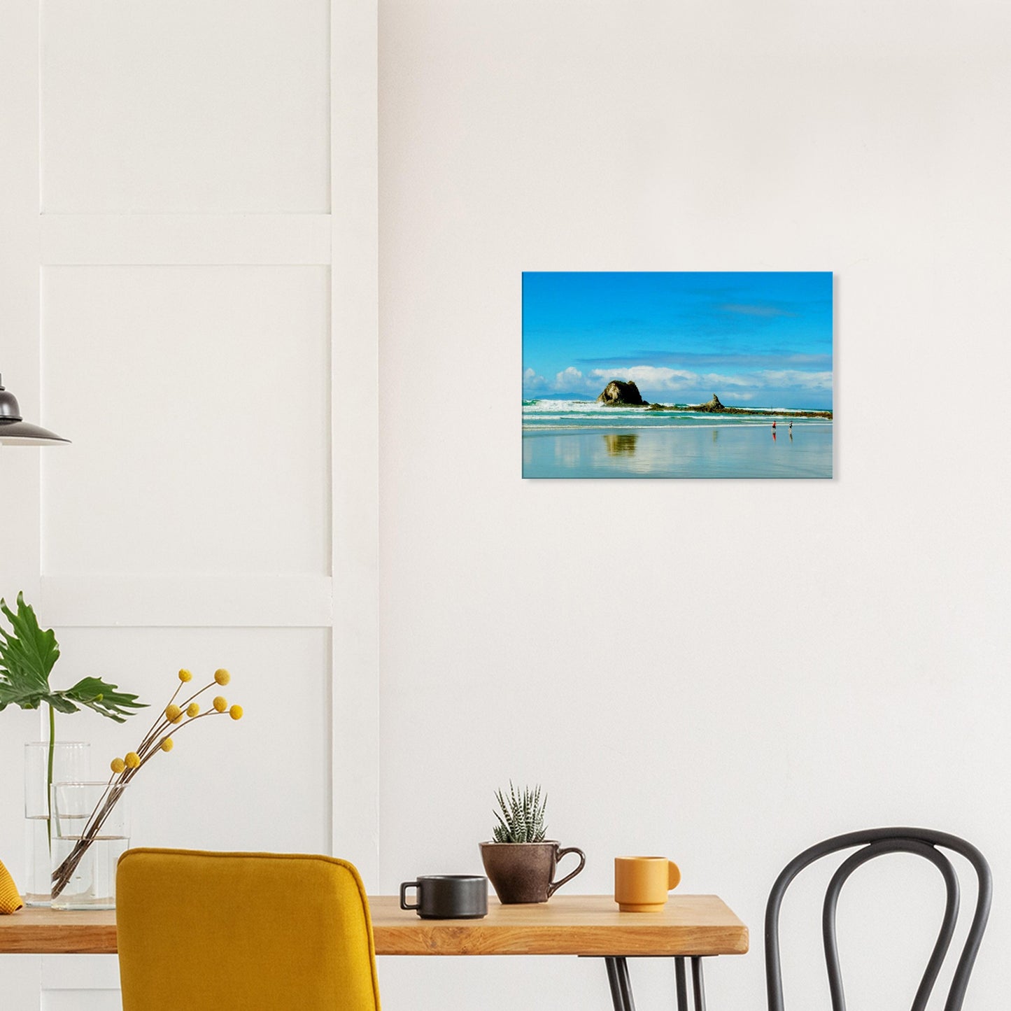 Our Sentinel Rock and Howling Wolf canvas art showcases a reflection of children running from the waves. A perfect addition for art lovers and a thoughtful gift for family and friends. A hanging kit is included for easy display. Order now to transform your space with this Mangawhai Heads Surf Beach artwork!
